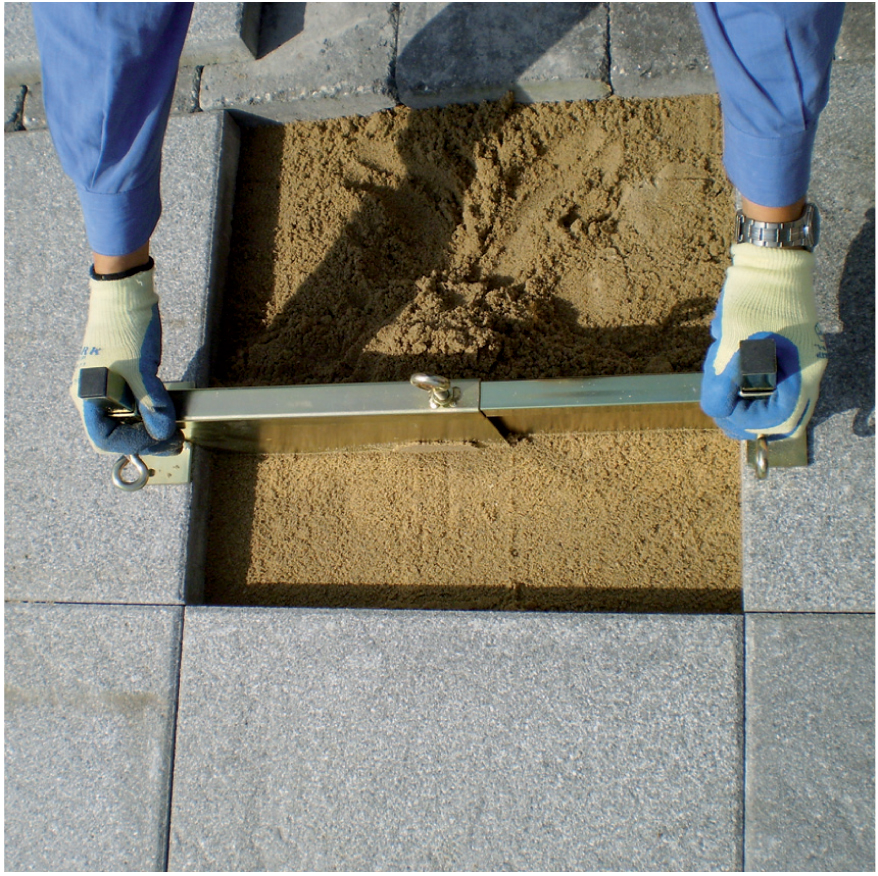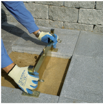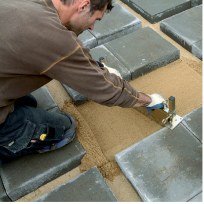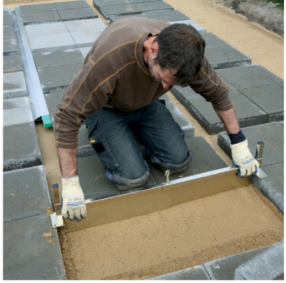 Avretter for reparasjon av fortau og andre områder med belegningsstein. Justerbar høyde fra 0-10 cm og bredde fra 30-55 cm