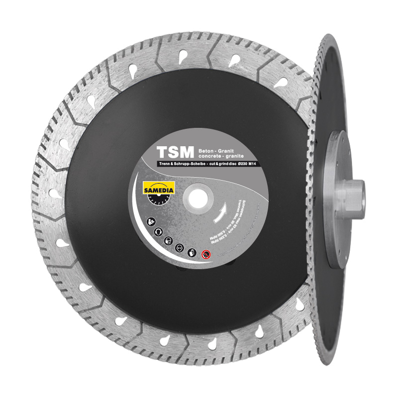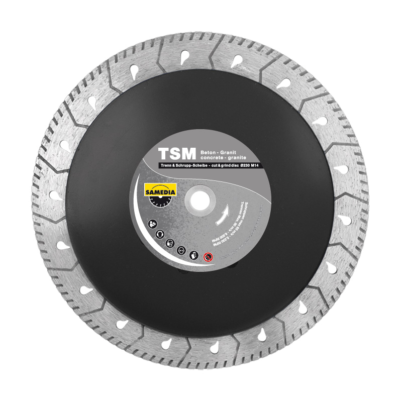 Diamantsagblad TSM fra Samedia er utviklet for skjæring av granitt, betong, porselen og keramikk. Skiven festen på en vinkelsliper med M14 feste.