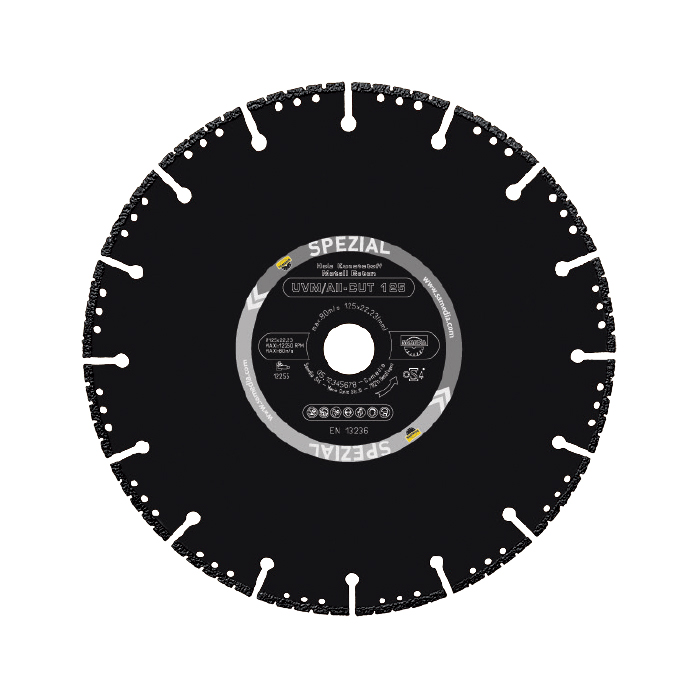 Profesjonelt diamantsagblad med vakuumloddet All-CUT-diamantkappskive, for universalt brukt. Utmerket for kapping av metall, grått støpejern, SML-rør (glassfiberforsterket) plast, tre, betongprodukter o.l.