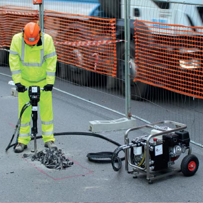 Brukes i kombinasjon med hydrauliske hammere, bormaskiner, pigghammer og små sager