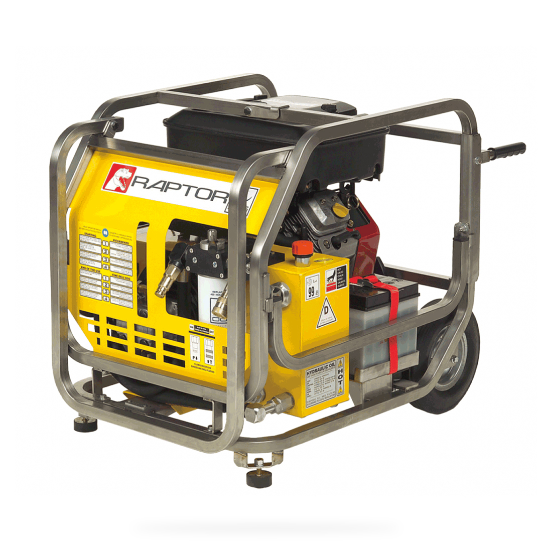 Brukervennlig hydraulisk aggregat med en kraftig 18HK bensinmotor. SUPER RAPTOR er svært robust, stillegående og enkle å transportere. Mål 85x60x65 cm, men hjul.