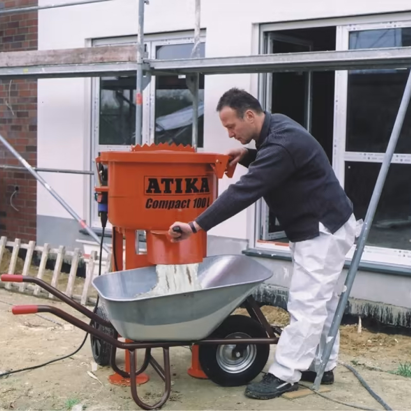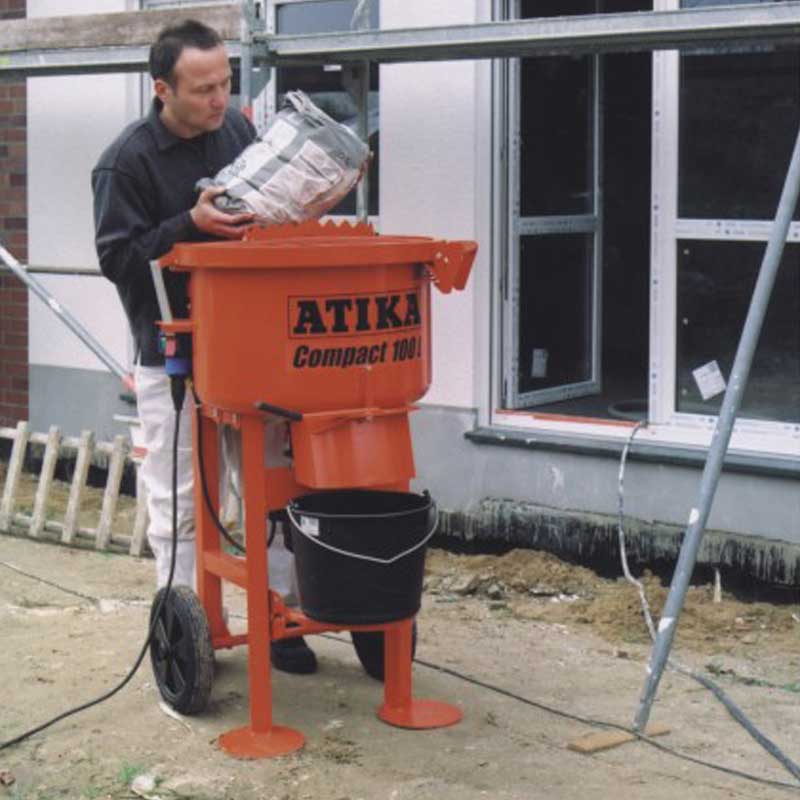 Tvangsblanderen Atika Compact 100 er kjent for sin høye kvalitet og pålitelighet. Tvangsblanderen er utstyrt med en elektrisk motor med en effekt på 2 kW, og en kraftig girkasse som gjør at blanderen vil takle selv de tøffeste byggeprosjektene.