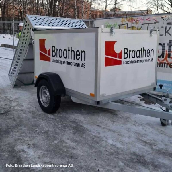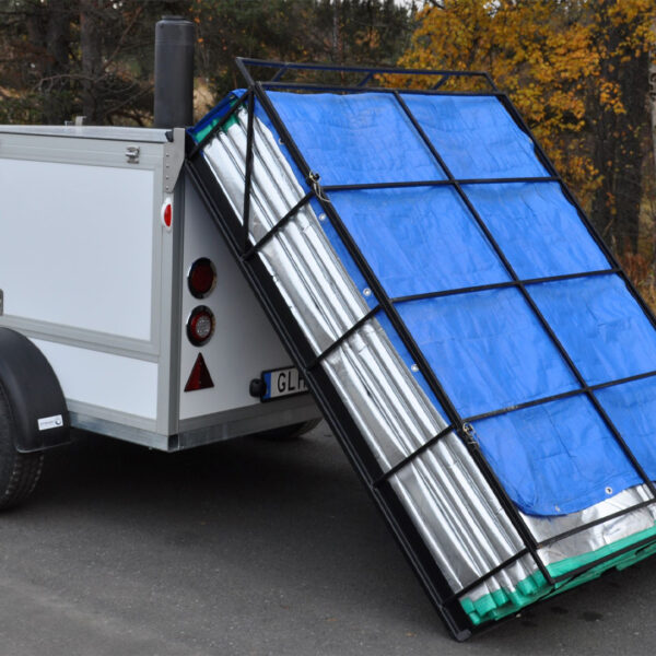 Alle isolasjonsmattene er plassert i en kasse på taket av vognen. Kassen kan felles bakover slik at du raskt og enkelt kan håndtere isolasjonsmattene. Det er totalt seks stykk isolasjonsmatter med målene 12 x 1,9 meter (totalt 140 kvm).