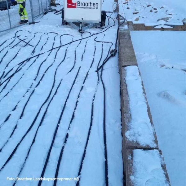 Varmeverket leveres med 400 meter glykol fylt slange, i et lukket system, som er fordelt over to tromler. Slangen når en varme på opptil 90 grader, og kan tine ca. 125 kvm av gangen og inntil 30 cm per døgn (avhengig av grunnforhold).