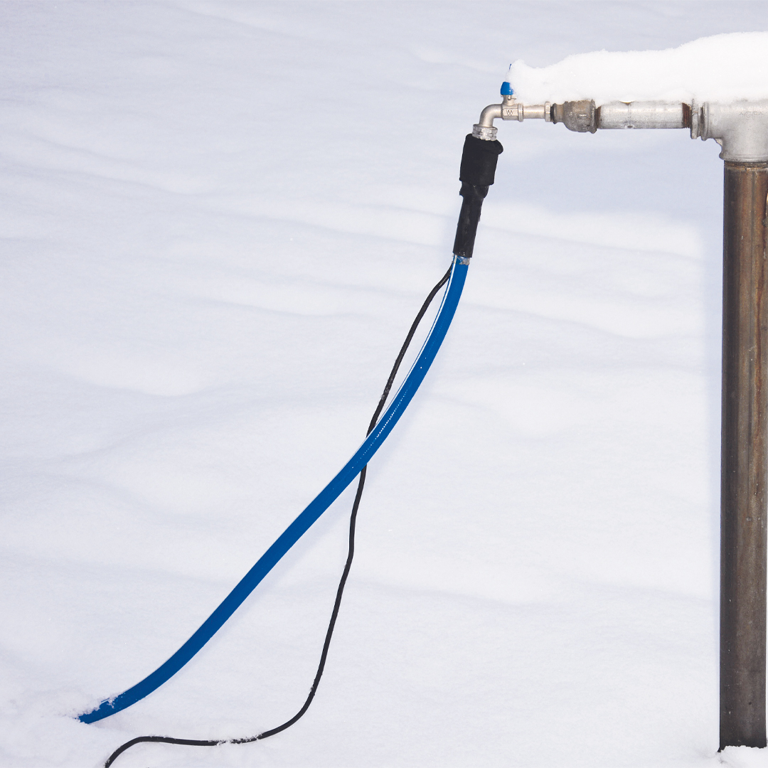 Vann hele året med Pirit Pro frostfrie vann og avløpsslanger. Komplett og klar til bruk! Slangen legges ned i bakken om sommeren, vi anbefaler å legge slangen i rør for å oppnå best mulig effekt og lengst levetid. Når kulda kommer slår termostaten inn og du får frostfritt vann, selv i ekstrem kulde.