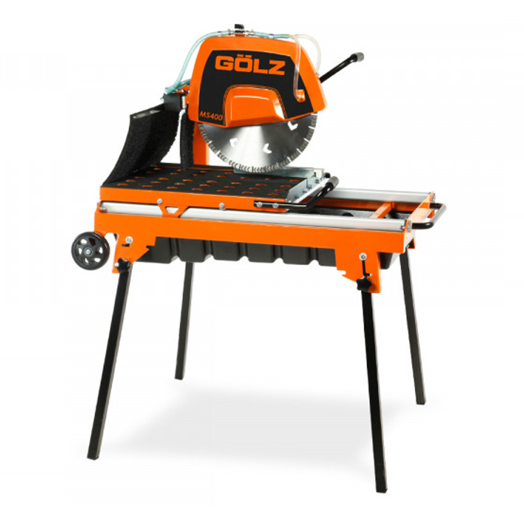 Gölz MS400 er en effektiv og profesjonell byggsag for både våtkapping. Sagen kapper i alle typer harde materialer som kantstein, betong, granitt o.l. Skjærebordet kommer med kulelager og laserskjæringsanordning for nøyaktig kutting. MS400 kutter opptil 137 mm i dybden og 700 mm i lengden. Bladhodet kan tiltes til en 45° vinklet for rask og enkel skråskjæring