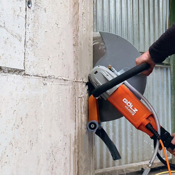HS400F fra Golz er en kraftig elektrisk motorkapper, utstyrt med «flush cut» bladbeskyttelse og utviklet for både tørr og våt kapping i asfalt og betong. Motorkapperen har en skjæredybde på opptil 160 mm.