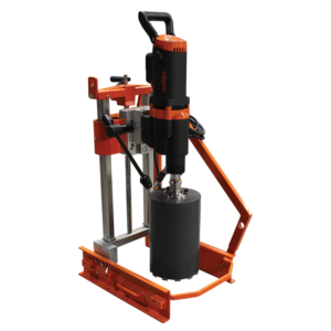 Kraftig kjernebormaskin for både våt og tørrboring. Utstyrt med en boremotor på 2,5 kW kraft, 3 hastigheter og kombinert innfesting 1″ ¼. For boring med stativ.