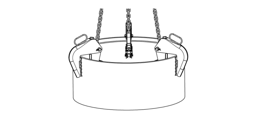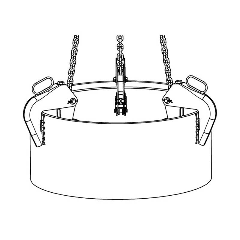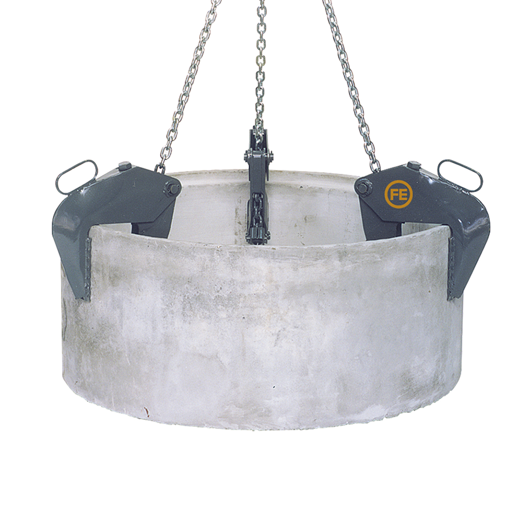 Robust stålkonstruksjon for transport og plassering av kumringer. Løfteklypen er i samsvar med offisielle sikkerhetsforskrifter og er utstyrt med et sikkerhetslås. Uventet glidning av lasten hindres av en fjær på hver klemme.