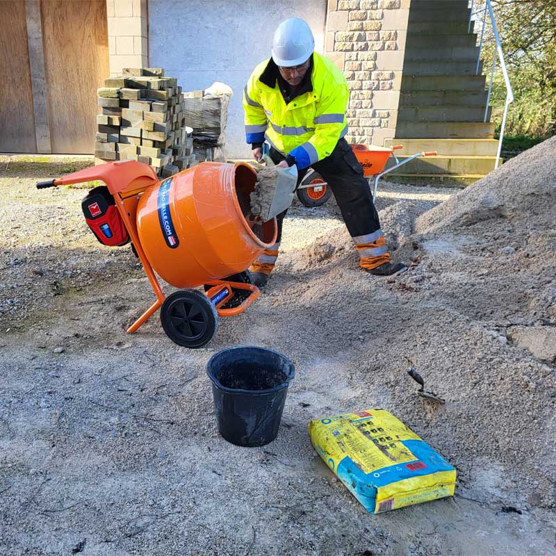 Batteridreven betongblander for mindre og mellomstore byggeprosjekter.