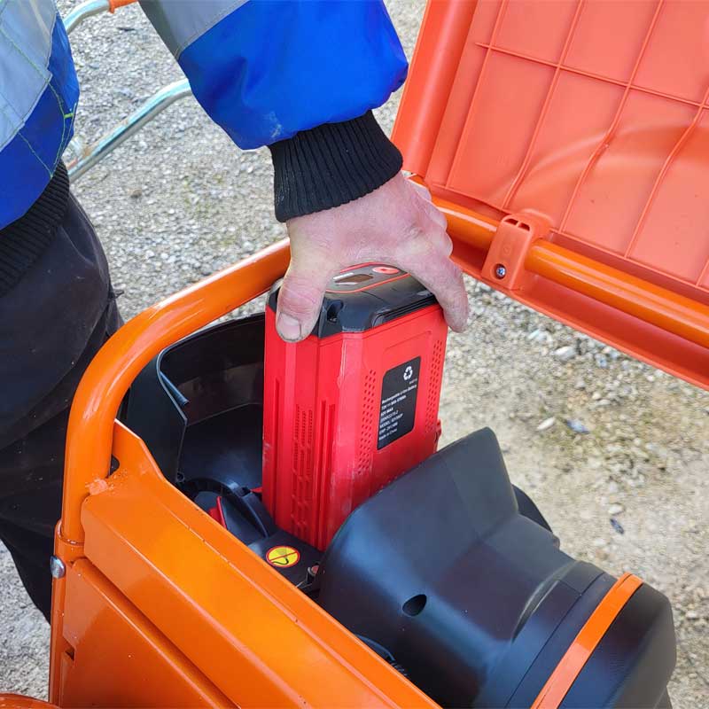 Den kompakte betongblanderen er nå tilgjengelig som en ren batteridreven maskin. Betongblanderen er utstyrt med en utslippsfri Li-ion batteridreven motor, og er spesielt designet for mindre til mellomstore byggeprosjekter. Med sin store kapasitet, robuste konstruksjon og enkel betjening, er dette en utmerket maskin for alle som trenger å blande betong på byggeplassen.