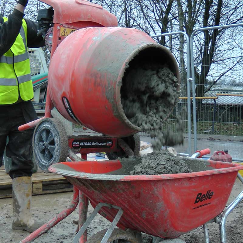 Bærbar betongmikser for mindre og mellomstore byggeprosjekter.