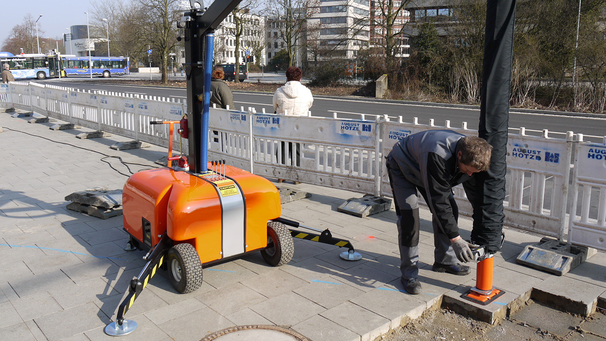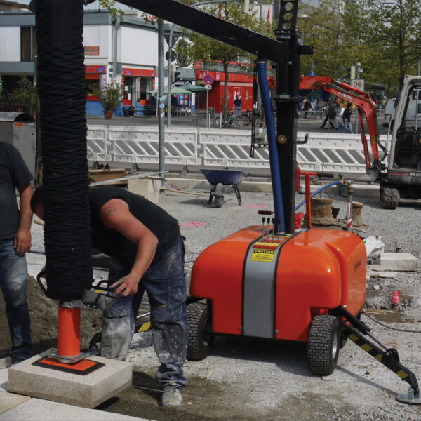 Ved hjelp av den integrerte vakuumslangeteknologien flytter og legger den elektriske vakuumløfter betong og natursteinselementer på opptil 140 kg.