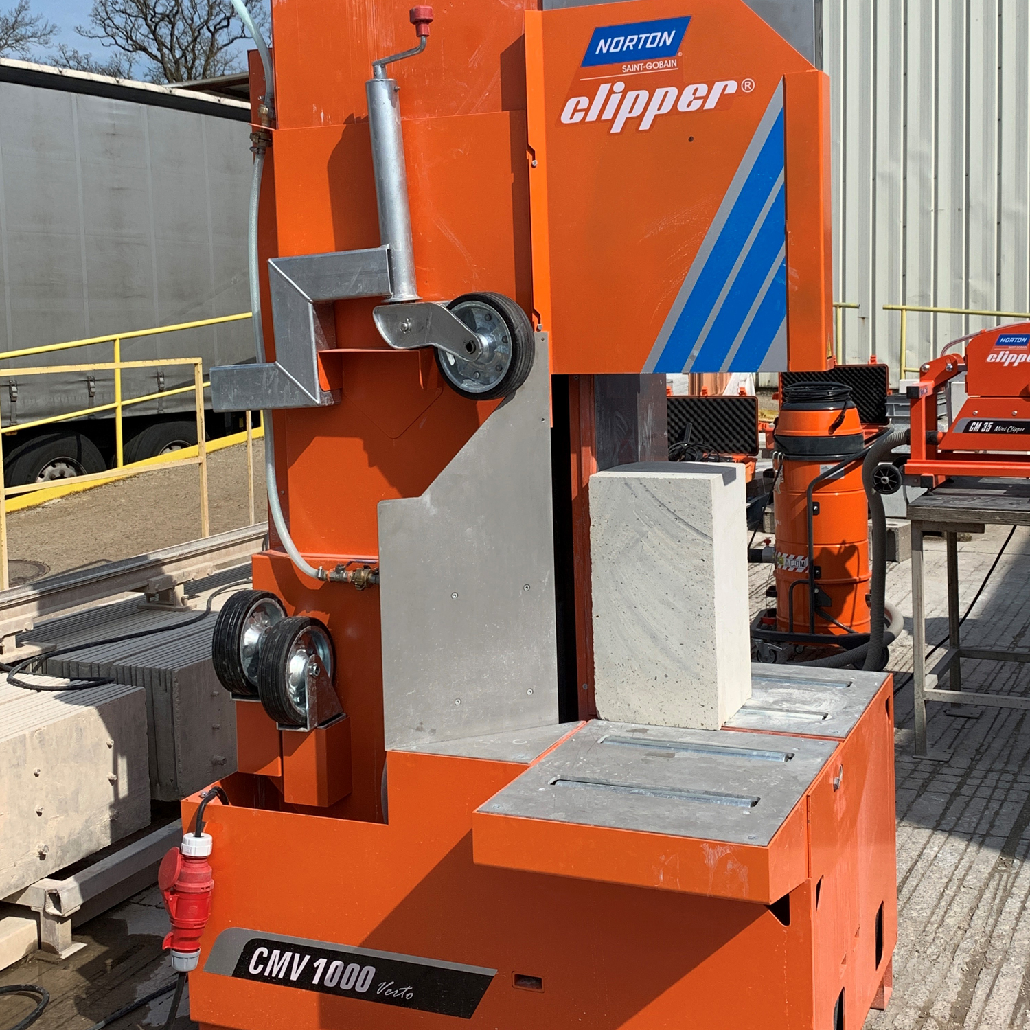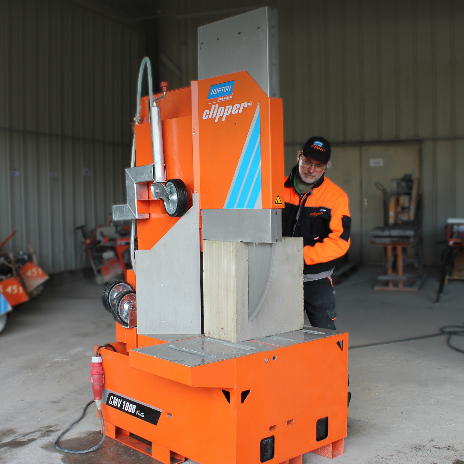 CMV 1000 Verto er vår storskala vertikale mursag egnet for stasjonær våt skjæring. Gjør arbeid med alle byggematerialer enkelt og sikkert. Håndterer lett store blokker med sitt hydrauliske rullebord. Kraftig dimensjonert maskin som er bygget for å vare. Makinen har også blitt konstruert med manøvrerbarhet med hjulsett for sikker transport. Basisversjonen leveres uten hjul og rullebord.