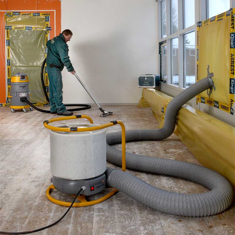 Luftrenseren er bygget opp rundt en kraftig sentrifugalvifte, som sikrer høy luftstrøm selv når filteret er tett. Ventilatorhuset er utført i kraftig og slagfast termoplast. Det robuste rørstellet er designet for å beskytte luftrenseren og sikre en enkel håndtering og transport. Luftrenseren er utstyrt med en indikasjon for 70% tett filter. Kan leveres med tilbakeslagsventil som sikrer mot tilbakestrømning av eventuelt giftige gasser.