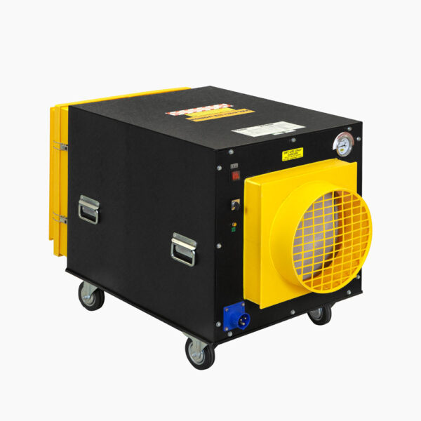 Luftrenseren plasseres i rommet der arbeidet utføres, og en Ø315 mm ventilasjonsslange føres ut av rommet. Maskinen leveres med en adapter, slik at man også kan koble til en slange på sugekanten, som kan føres nær arbeidsstedet for direkte avsug. Det medfølgende transportdekselet forsegler maskinen under transport. Fire kraftige hjul, hvorav to er låsbare, og fire bærehåndtak gjør maskinen enkel å manøvrere.