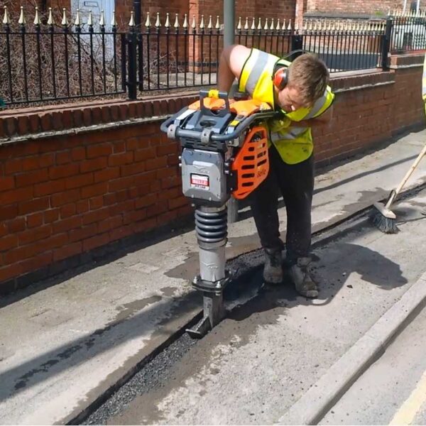 Svært solid og driftssikker stampemaskin for profesjonelt bruk. Maskinen er utstyrt med en 4-takts Honda bensinmotor, som gir en effektiv og pålitelig kraftkilde. RTX 60R har en sterk ramme og er utviklet for å tåle tøffe forhold.
