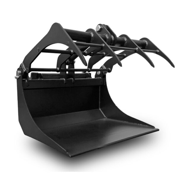 Skuffe med gripeklo, det perfekte verktøyet for håndtering av løse materialer. Med åpen klo kan tilbehøret også brukes som vanlig skuffe.