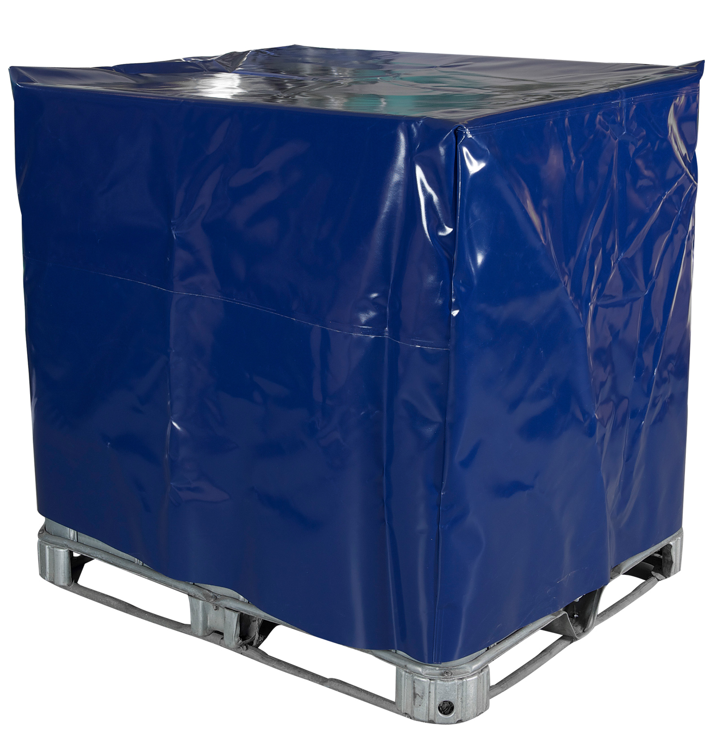 Dette vanntette PVC-dekselet er perfekt for å sikre en IBC standard container mot vann i fuktige miljø. Sømmene på dekselet er sveiset, noe som gjør dekselet helt vanntett. Dekselet er utformet i en størrelse som gjør det mulig å ha en container varmer festet til containeren under dekselet, som gjør det mulig å trygt varme opp innholdet i containeren selv i vått vær eller under fuktige forhold. dekselet er produsert i bestandig PVC-plast og er svært enkelt å feste på og løsne fra en tankpalle (intermediate bulk container). Dekselet brettes enkelt sammen for minimal lagringsplass.
